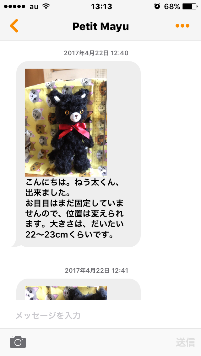 以下スマホ(ミンネさん内)でのやりとり
