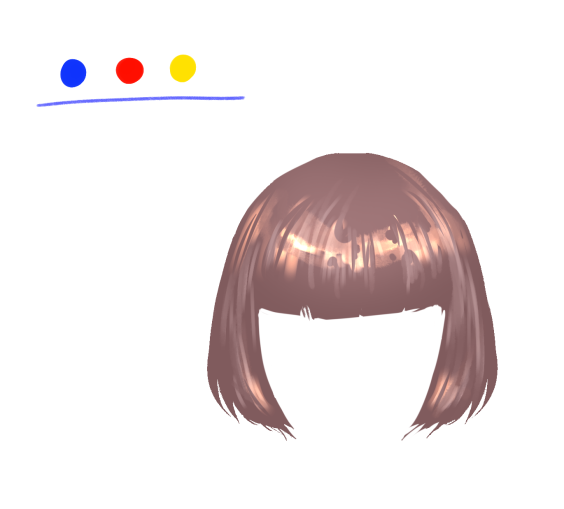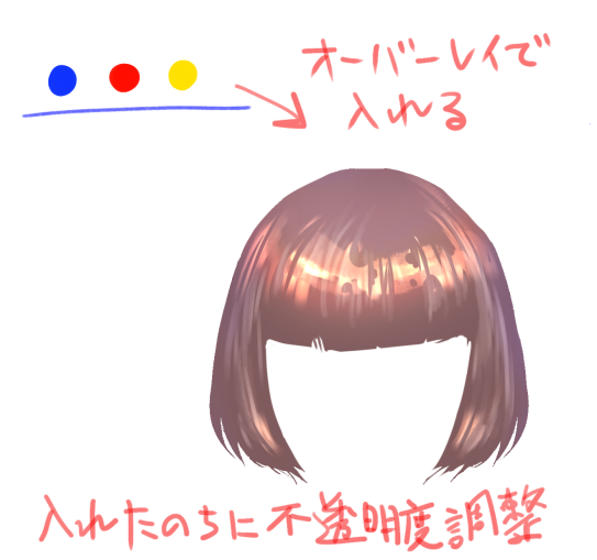 たとえば、髪の毛を同色の色相の明暗のみで塗ったあとに